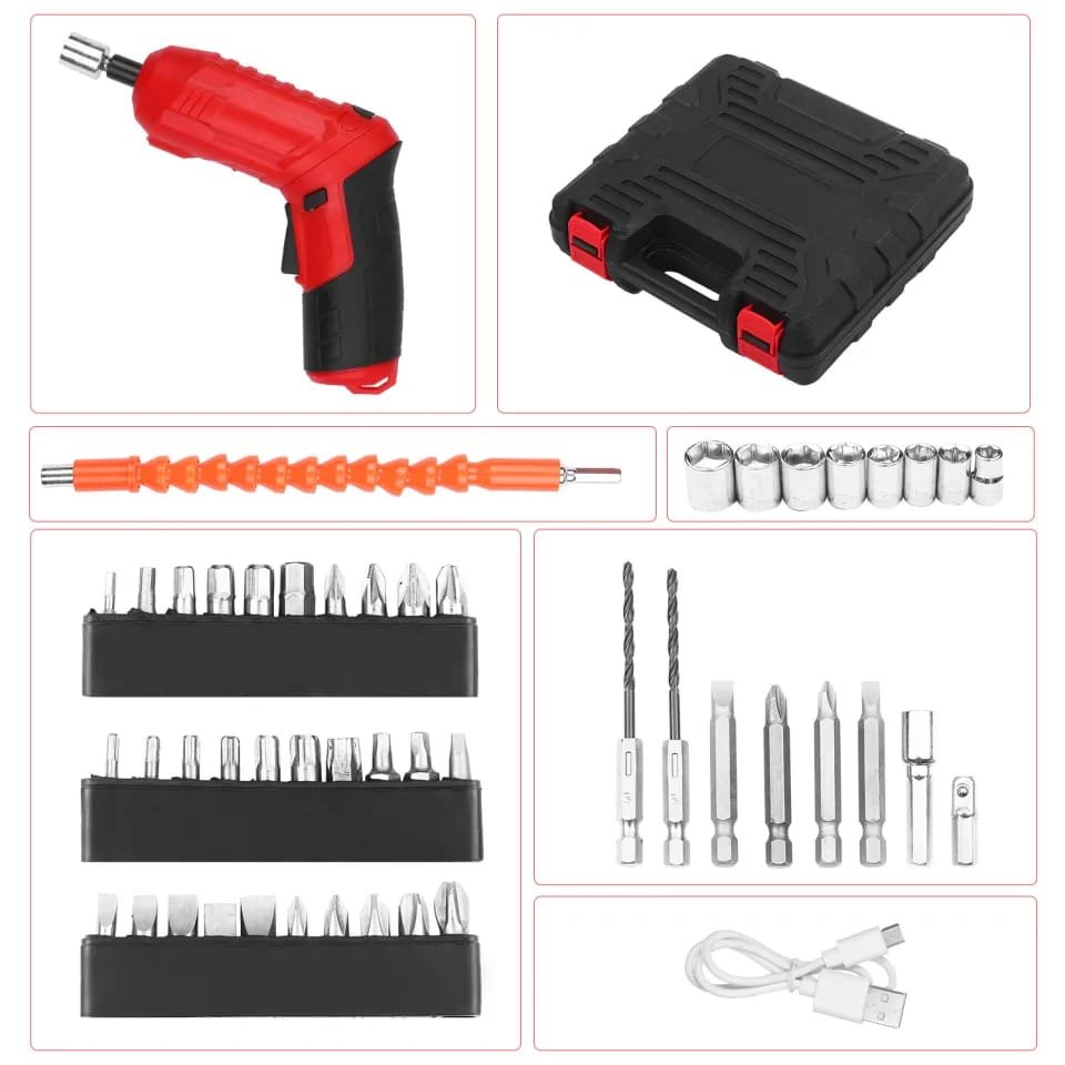 এই কর্ডলেস ইলেকট্রিক স্ক্রু ড্রাইভার কিটটি ঘরোয়া ও হালকা প্রফেশনাল কাজের জন্য একটি সম্পূর্ণ সমাধান। এতে রয়েছে শক্তিশালী রিচার্জেবল স্ক্রু ড্রাইভার, বিভিন্ন ধরনের স্ক্রু বিট, এক্সটেনশন রড, সকেট ও একটি মজবুত ক্যারি বক্স।