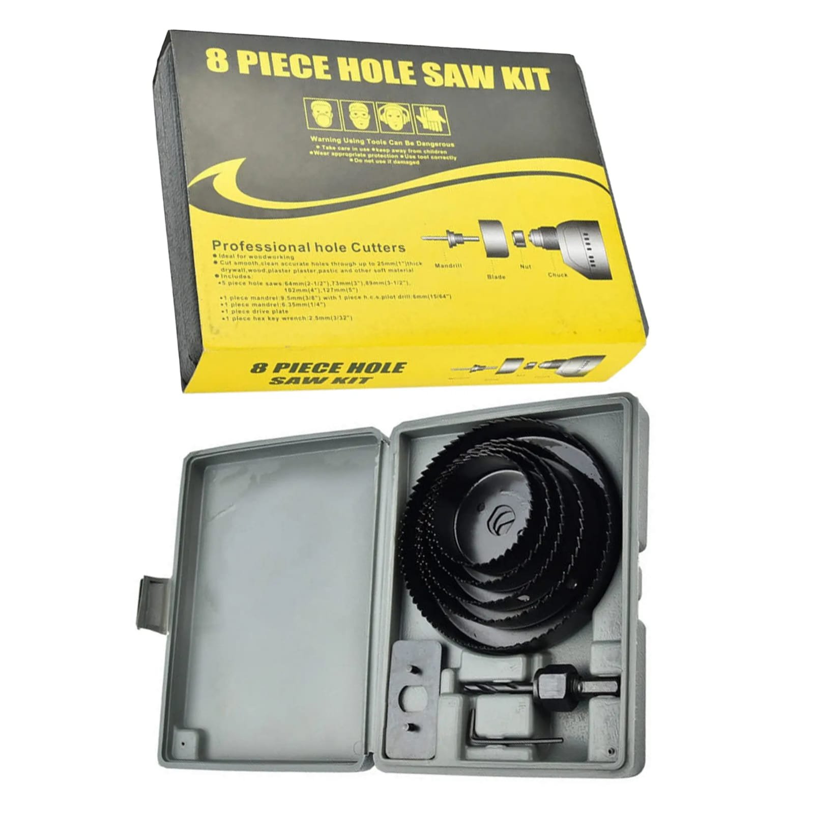 মাল্টি সাইজ ৮ পিস হোল স’ কিট—কাঠ, প্লাস্টিক ও পাতলা মেটালে নিখুঁত গোল ছিদ্র কাটার জন্য আদর্শ টুল সেট।